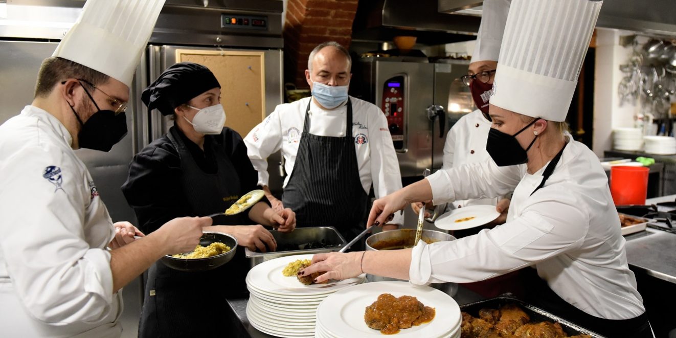 Peposo di Chianina, stick di trippa croccante e bicromia di patata e il dessert, con un Cremoso al gianduia, gelatina di frutti esotici e spugna di pino mugo con riduzione di grappa della Distilleria Deta. Le portate saranno accompagnate dai vini messi a disposizione da Carpineto Grandi Vini di Toscana, Cantina dei Vini Tipici dell’Aretino e Tenute di Fraternita, che saranno presentati e serviti dai sommelier della delegazione aretina di AIS, Associazione Italiana Sommelier Toscana.