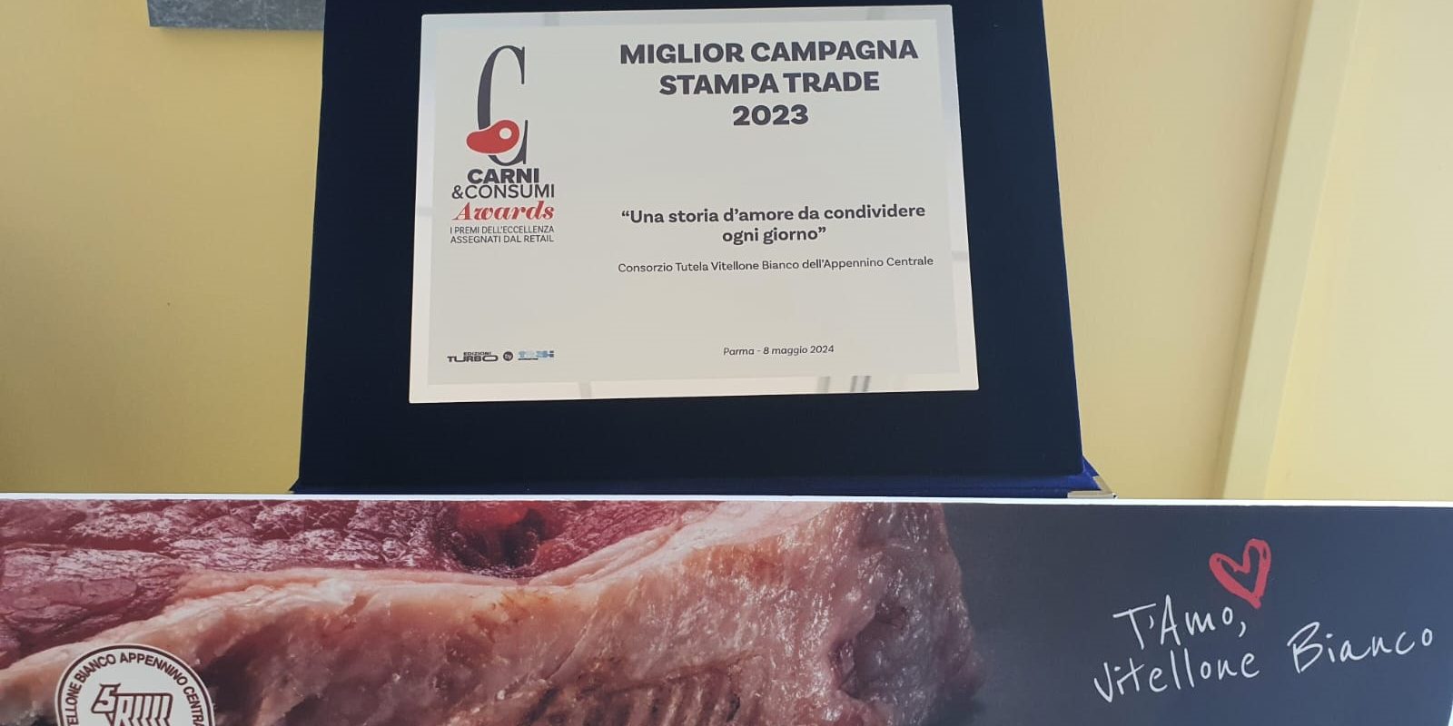 La campagna di promozione ‘T’Amo, Vitellone Bianco. Una storia d’amore da condividere ogni giorno’ dedicata ai 25 anni della IGP Vitellone Bianco dell’Appennino Centrale è stata premiata nei giorni scorsi a Cibus come “Miglior campagna stampa trade 2023”. Il riconoscimento è stato assegnato da una giuria composta da oltre 100 buyer e operatori del settore retail in occasione dei ‘Carni&Salumi Awards’. Durante l’appuntamento il Consorzio di Tutela ‘Vitellone Bianco dell’Appennino Centrale’ ha ricevuto anche il premio speciale per l’anniversario dei 25 anni dall’ottenimento dell’IGP, assegnato nel 1998 dall’Unione europea come primo marchio di qualità per le carni bovine fresche per l’Italia.