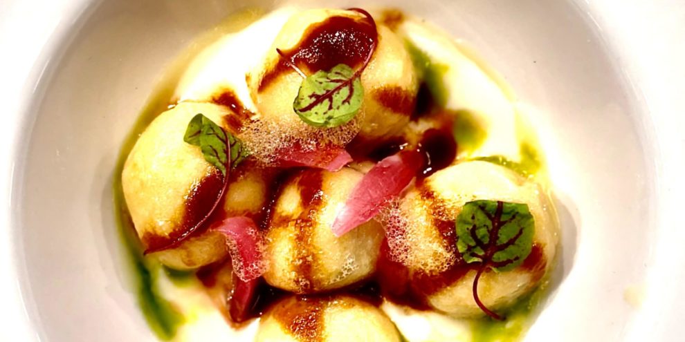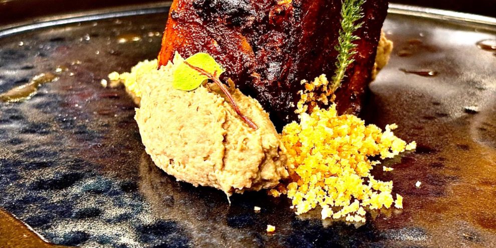 ARVOLTOLO RIPIENO CON FALAFEL DI VITELLONE BIANCO DELL’APPENNINO CENTRALE IGP E HUMMUS DI LENTICCHIE ACCOMPAGNATO DA SALSA TZATZIKI