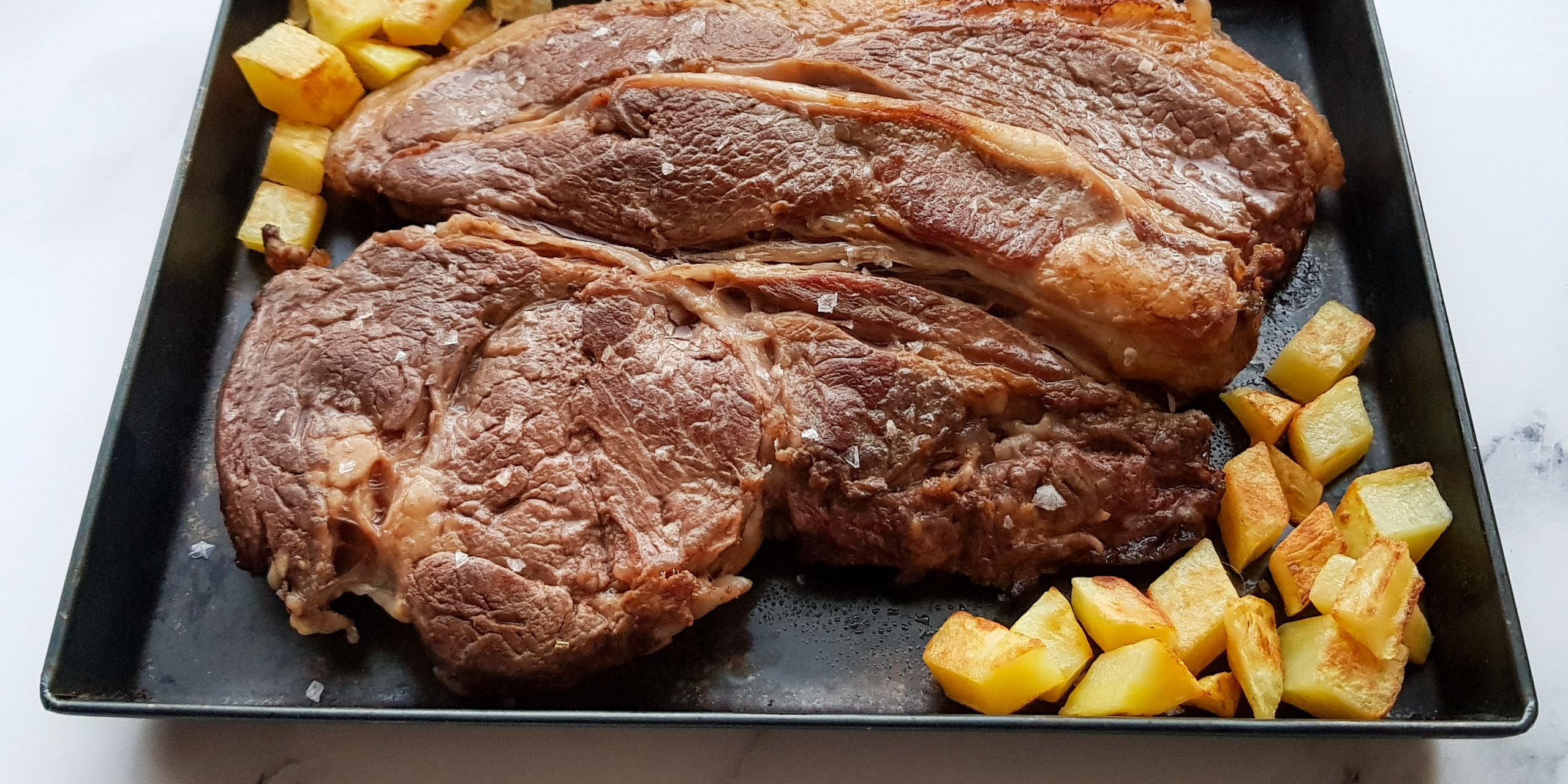Una volta sigillata, mettere le costate su una teglia foderata con carta forno e completare la cottura.