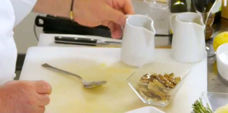 A cottura terminata passare di nuovo i pezzetti di guancia di vitellone bianco dell’Appennino Centrale in padella con il rosmarino e uno spicchio d’aglio e coprire la padella con un coperchio.