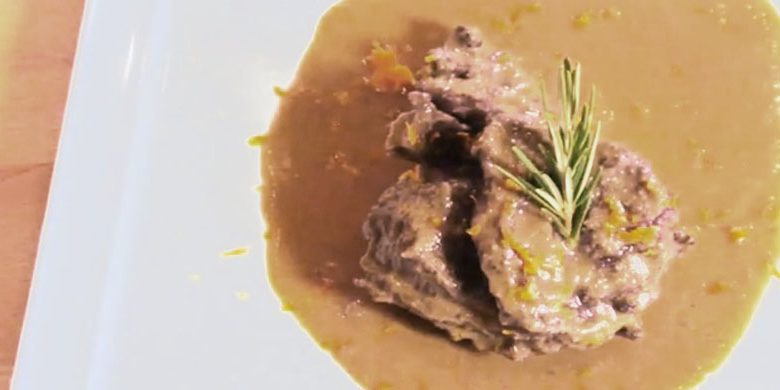 Togliere dal fornello la casseruola e frullare il condimento con un mixer aggiungendo un filo d’olio extravergine di oliva a crudo per dargli ancora più sapore. Mettere nuovamente la casseruola con il condimento per lo stracotto di guancia di vitellone bianco dell’Appennino Centrale sul fornello aggiungendo un po’ di burro per rendere il condimento più denso.