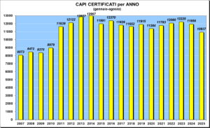 Tabella 1: certificazioni IGP Vitellone Bianco nel periodo gennaio- agosto per anno
